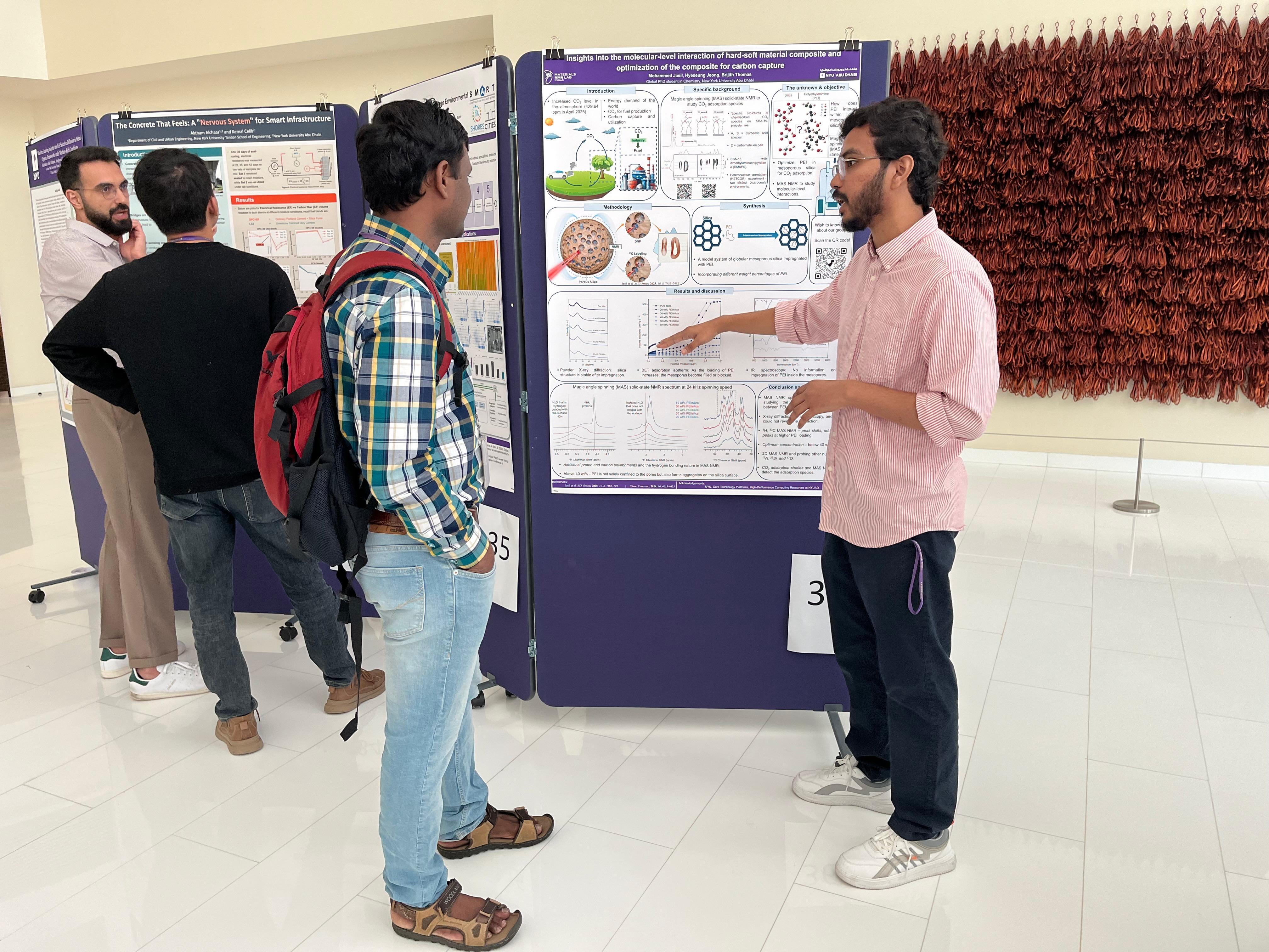 Mohammed Jasil presents his research on molecular-level interactions in carbon capture materials during the 9th Annual Graduate and Postdoctral reseach showcase 2025